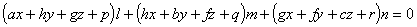 l,m,n变动时,这个方程表示一个平面把,由此二次曲面的直径平面组成一个平面把.把内任一平面都通过下列三个平面的交点: