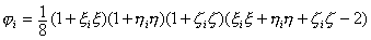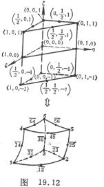 [二十节点六面体] 二十节点包括六面体的八个顶点和十二个棱边的中点(图19.13)。其型函数为