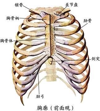 三至七肋与体连    八至十肋成肋弓