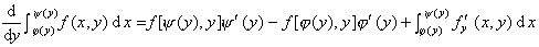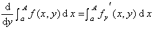[积分号下的微分法]   f(x,y)在有界区域R(axA,byB)上连续,并且存在连续偏导数(x,y),则当b<y<B时,