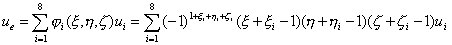 [型函数]    对于单位立方体,利用节点的对称性得出型函数为
