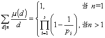 5° 乘积麦比乌斯变换 设n为正整数,若