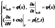 where N is the outer normal direction of Γ , φ ( x ), ψ ( x ) are known functions on D , ( , t ) and ( , t ) ( ∈ Γ , 0 ≤ t ≤ T ) are defined in A known function on Γ , ( , t ) ≠ 0 .