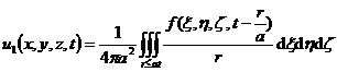 2 ° For a sphere (the center of the sphere is O and the radius is a ), the basic solution for u = 0 is , r is the distance between P ( x , y, z ) and the parameter point M ( , , ) , and M is about the sphere. Invert the point M 1 , record r 1 as the distance between M 1 and P , then the Green's function is ![]()